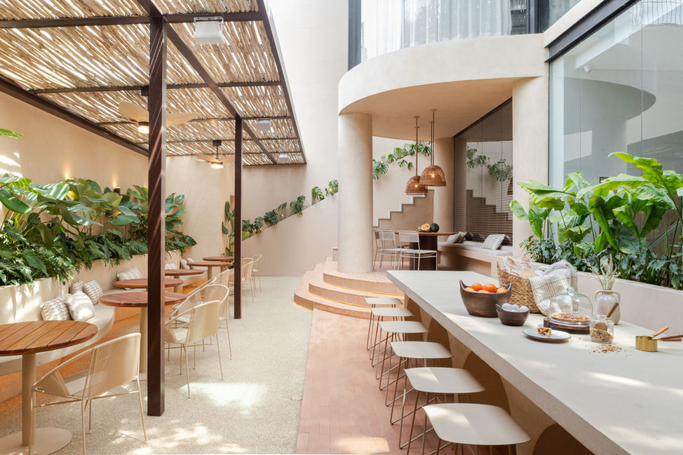 Um espaço que tem papel de pausa e respiro no dia a dia de trabalho, nessa agência de eventos. Uma identidade única, que sai do padrão estético do restante dos ambientes de forma proposital. Em tons terrosos e atmosfera elegante, é um convite para viver essa experiência. Um espaço gourmet, que tem função que varia entre um almoço casual dos funcionários até espaço para eventos. Com churrasqueira; lavabo, uma mesa com banquetas para um momento descontraído e mesas para receber todos os convidados. Uma estrutura de metal com madeira faz um jogo incrivel de luz e sombra, transformando esse espaço em um ambiente agradavel de convivência.